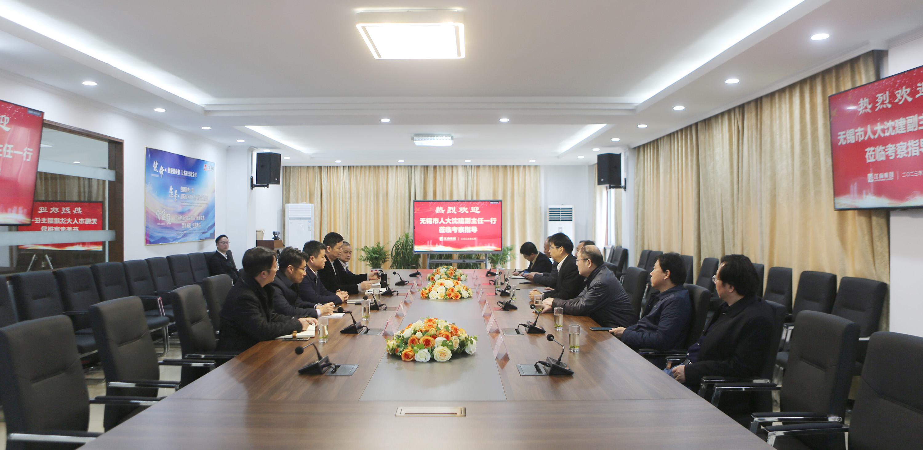 On March 20, Shen Jian, deputy director of the Standing Committee of Wuxi Municipal People's Congress, Huang Ronghua, member of the Party Group, Chen Xiaohua, director of the Economic Working Committee, Lv Guofeng, director of the Economic Working Committee and other leaders visited Jiangnan for investigation and research. He Xiaojin, Deputy Director of the Standing Committee and deputy Secretary of the Party Group of Yixing Municipal People's Congress, Chen Weineng, deputy mayor and Secretary of the Party Committee of Guanlin Town, Yan Xufeng, Director of the Financial and Economic Working Committee of the Standing Committee of the Municipal People's Congress, Huang Jiaqing, deputy director of the Budget Supervision Section, Wang Yudong, deputy secretary of the Party Committee of Guanlin Town, etc., accompanied them.Chairman of the Board of Directors Chu Hui, rotating general manager Jiang Yongwei, vice general manager Chen Xiaojun and other warm reception.
